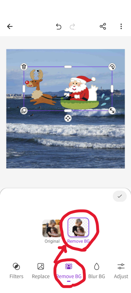 手前画像を読み込んだ状態 「Remove BG」→「Remove BG」と選択すると、適当に画像を切り抜いてくれます